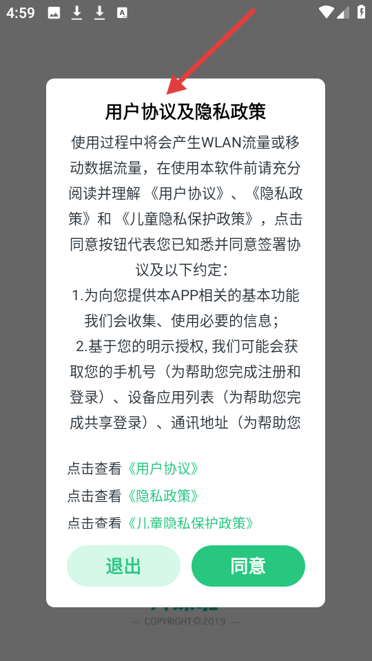 1、開啟開課啦APP,跳出用戶協議及隱私政策界面,提示使用中的流量情況與信息收集事項,給予同意或退出選擇。