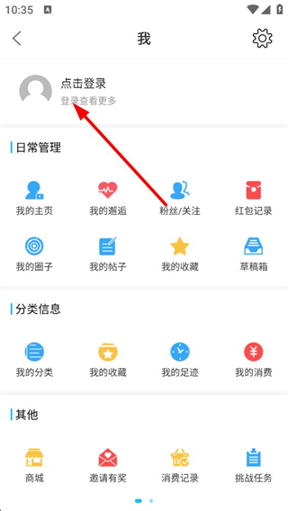 2、點擊個人中心入口,進入個人中心界面,可看到我的主頁、粉絲、關注等功能,點擊登錄可進入賬號登錄選擇界面。
