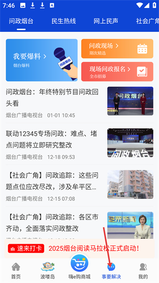 4、問政煙臺板塊,有我要爆料、問政現場報名等入口,發布問政回頭看、聯動12345整改等本地政務新聞。