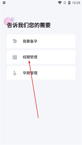 2、在功能選擇界面根據自身需求點擊對應選項,比如選擇經期管理,確定后即可進入該功能的信息設置環節。