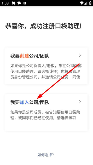 3、注冊成功后,可選擇我要創建公司、團隊或我要加入公司、團隊,若為公司成員可選擇加入公司、團隊。