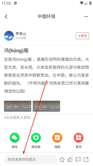 4、點擊隨手拍中的內容進入詳情頁,查看完整介紹信息,可選擇關注發布者,也能通過微信朋友圈等渠道分享該內容,還可發表自己的觀點。