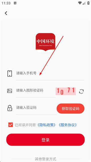 1、進入登錄頁面,先輸入手機號碼,再填寫對應圖形驗證碼,點擊獲取驗證碼并填入,勾選已閱讀并同意相關協議后,點擊登錄按鈕。