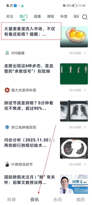 3、選擇一篇感興趣的文章閱讀內容了解相關健康知識,還可進行收藏等互動,獲取對應的健康提示。