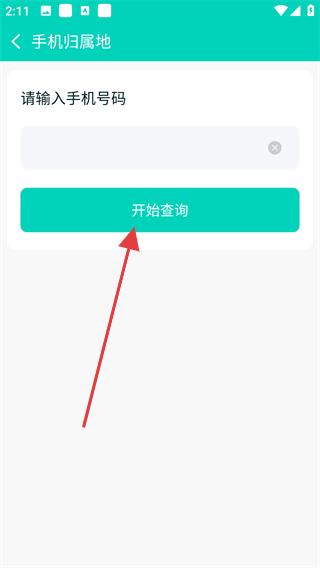 2、進入查詢頁面,輸入手機號碼,點擊開始查詢,開啟手機歸屬地查詢流程。