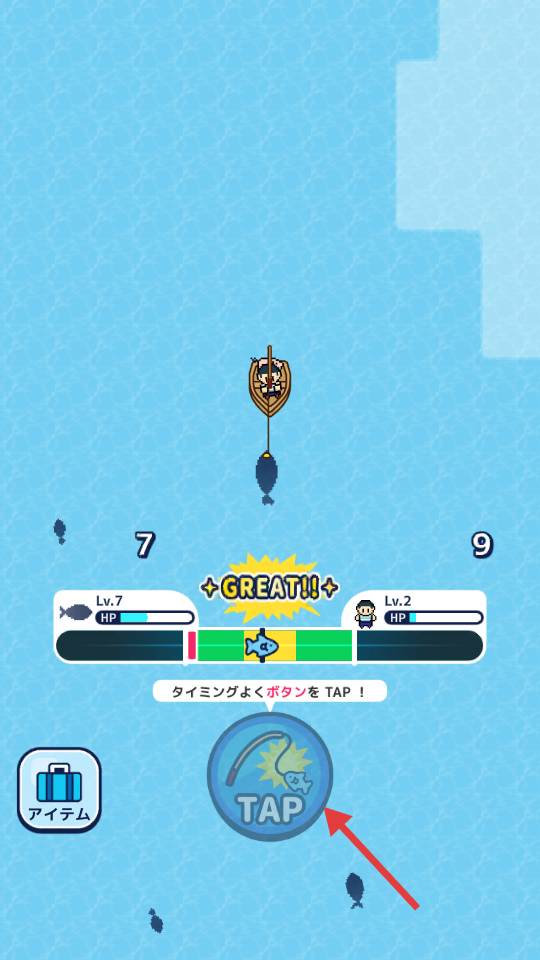3、接著就會進入釣魚的交互環節,玩家要把握時機點擊TAP按鈕來進行釣魚操作,把握好時機這樣能更順利地釣起魚,提升釣魚成功率。