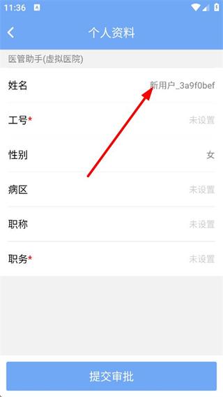 3、點擊編輯按鈕進入個人資料頁面,可看到姓名工號性別病區職稱職務等信息項,部分信息顯示未設置,可補充完善這些資料。