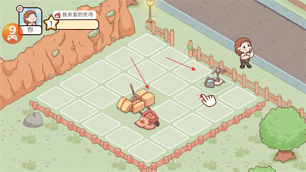 3、清理完雜草等后,可在農場的方格區域內放置各種農場設施,比如農機具、草料堆等,合理布局這些設施。