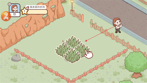 2、玩家進入進入農場后,會看到農場中有雜草,點擊這些雜草區域對雜草進行清理,為后續的農場種植和建設騰出空間。