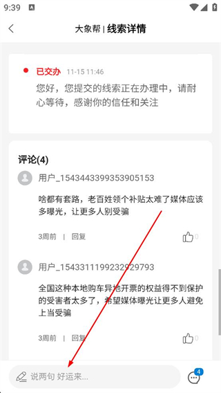 3、瀏覽詳情頁的評論區查看其他用戶的留言內容,了解大家對該線索的討論觀點,之后找到評論輸入框準備發表看法。