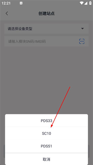 4、在設備類型列表中選擇目標型號如SC10,確認選擇后,繼續填寫模塊SN碼等信息,點擊下一步推進站點創建。