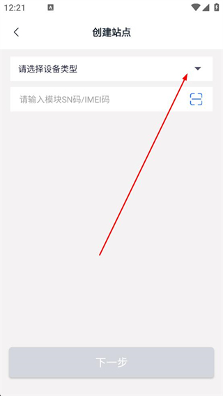 3、在創建站點頁面點擊請選擇設備類型的下拉選項,展開設備類型列表,準備選擇對應的設備型號。