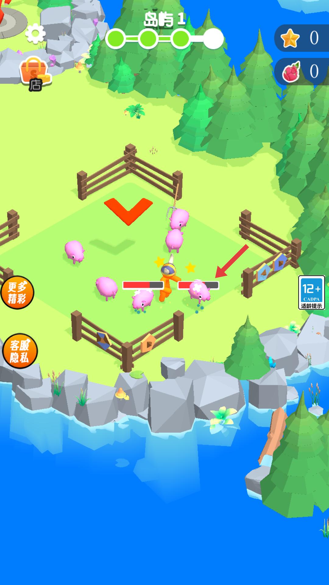 3、到達小豬區域后,與小豬互動,通過操作讓角色和小豬產生關聯,完成互動任務,注意觀察界面提示的進度條。