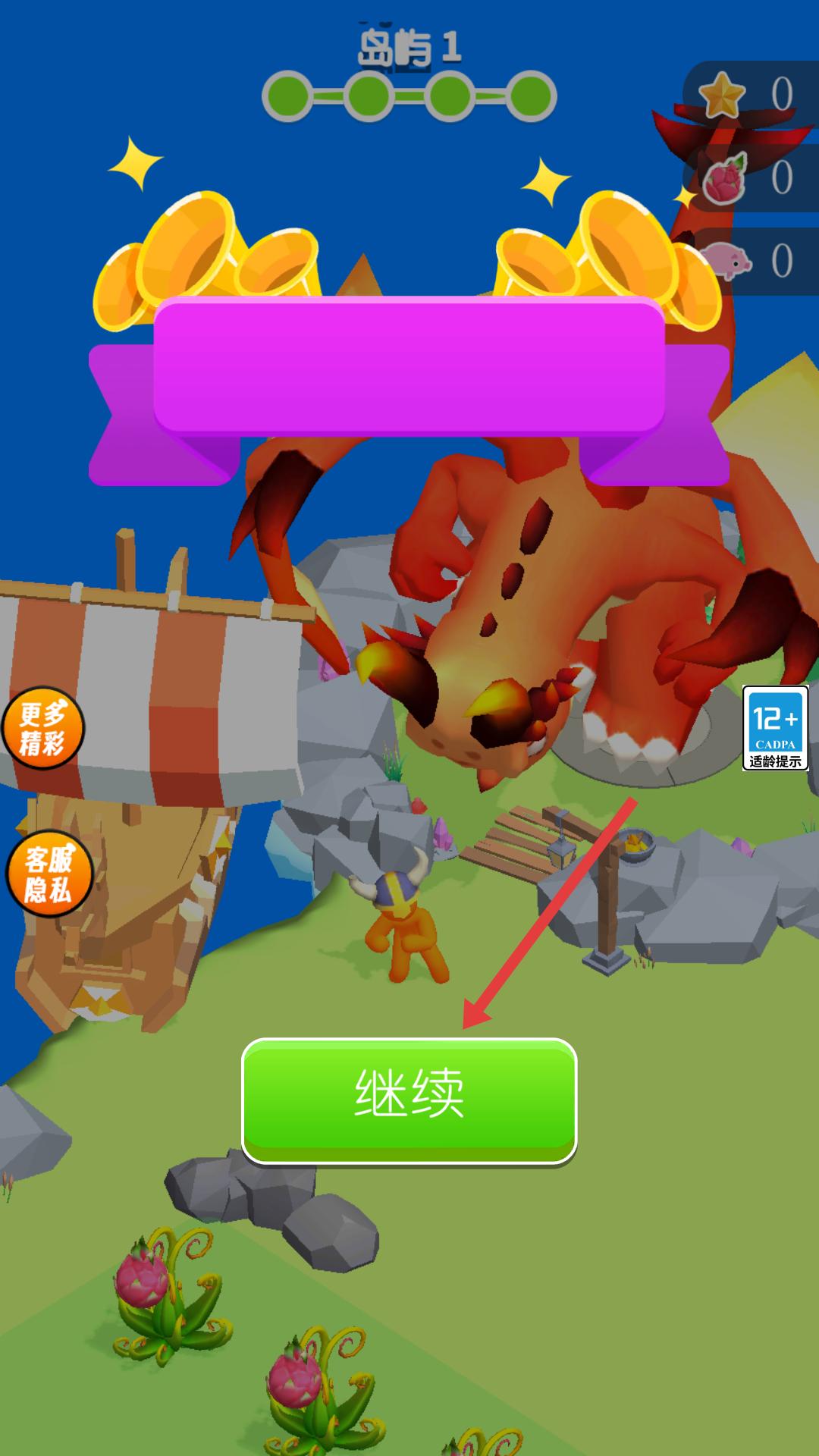 4、完成一系列任務后,界面會出現繼續按鈕,點擊該按鈕,即可進入下一段游戲內容,繼續探索島嶼。