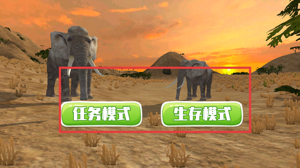 1、游戲開始有任務模式和生存模式可選,若想體驗有目標的挑戰選任務模式,若想自由探索求生選生存模式,根據喜好開啟大象模擬之旅。
