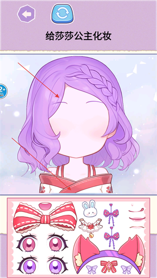 3、進入裝扮界面后比如給莎莎公主化妝,從屏幕下方展示的各種貼紙裝飾中點擊選擇喜歡的貼紙,完成角色的化妝和裝扮。