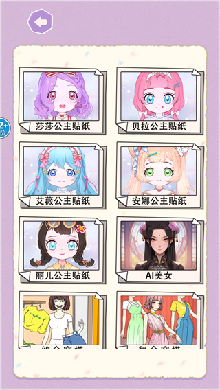 2、在角色選擇界面瀏覽各種公主貼紙角色如莎莎公主貼紙、貝拉公主貼紙等,點擊選擇自己想要裝扮的角色,進入裝扮界面。
