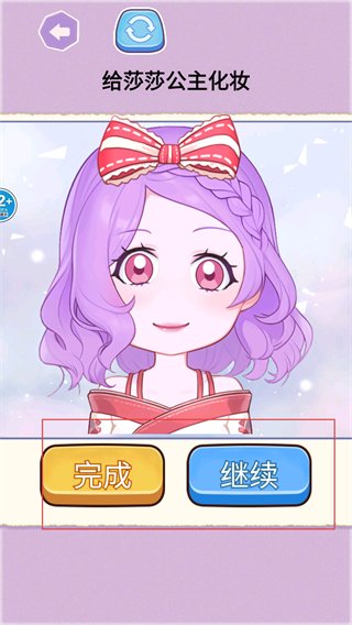 4、完成裝扮后點擊完成按鈕保存自己的裝扮成果,如果還想繼續進行裝扮嘗試,也可以點擊繼續按鈕。