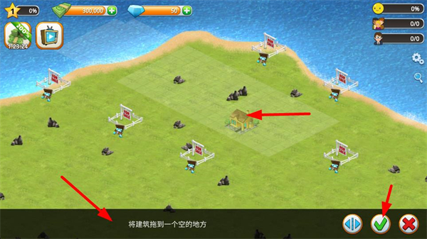 2、建造房子后將其拖到場景內的空地位置,完成放置操作后點擊確認按鈕,即可將房子固定在該區域,推進小鎮的建設。
