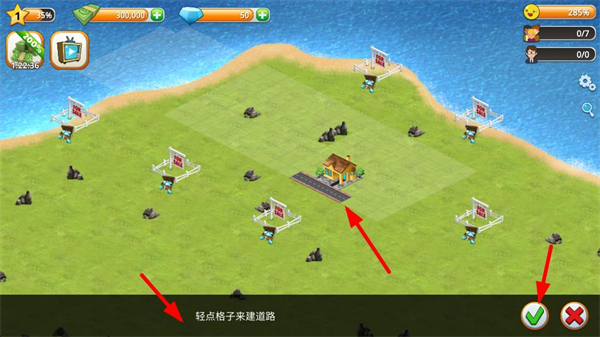 3、放置好房子后,輕點對應的格子來建造道路,讓道路連接建筑區域,完善小鎮的交通布局,提升小鎮的建設完成度。