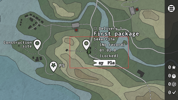 1、在地圖界面中可挑選不同的關卡,每個關卡都有獨特的地形和送貨任務,點擊進入開啟相應的快遞運輸挑戰。