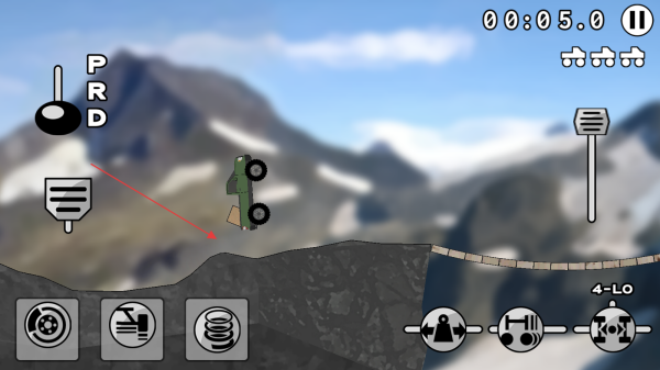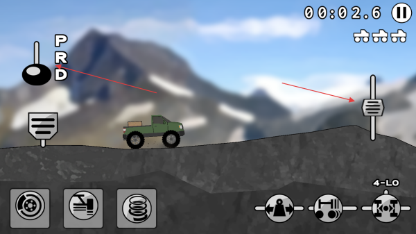 2、通過操作界面中的控制桿等元素,控制越野車的行駛方向、速度和檔位等,在崎嶇的地形上平穩駕駛,確??爝f安全運輸。
