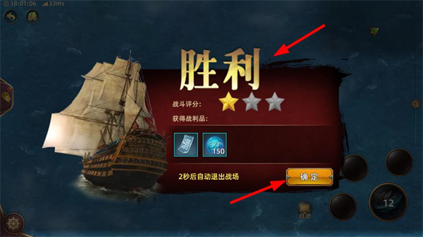 4、戰斗勝利后可獲得戰利品,如經驗和道具,點擊確定退出戰場,繼續航海冒險之旅。