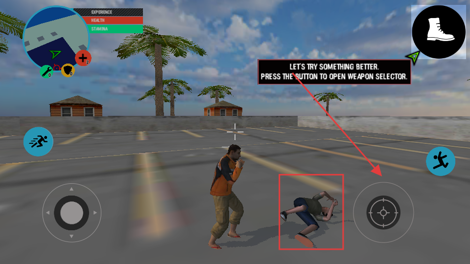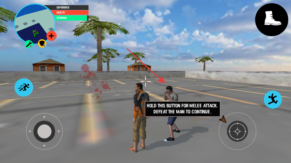 3、玩家遇到敵人時,按住屏幕上提示的相應按鈕進行近戰攻擊,擊敗敵人來繼續推進游戲流程,例如擊敗圖中遇到的男子。