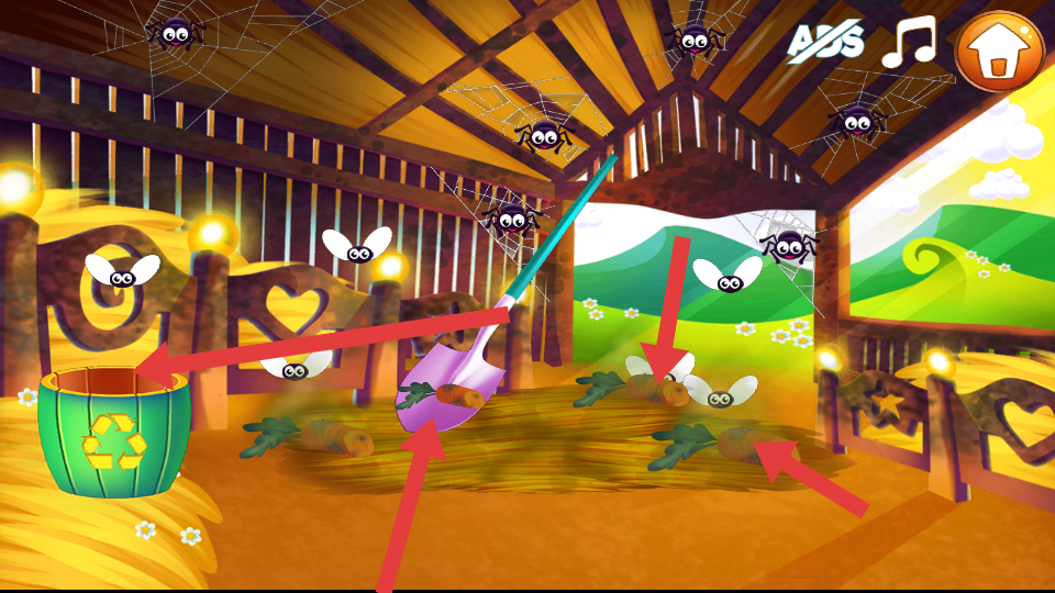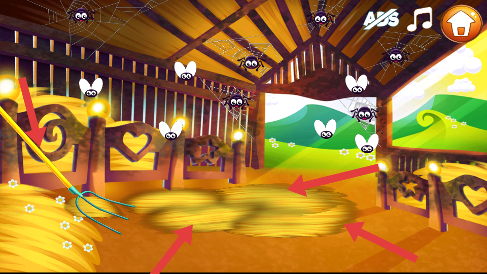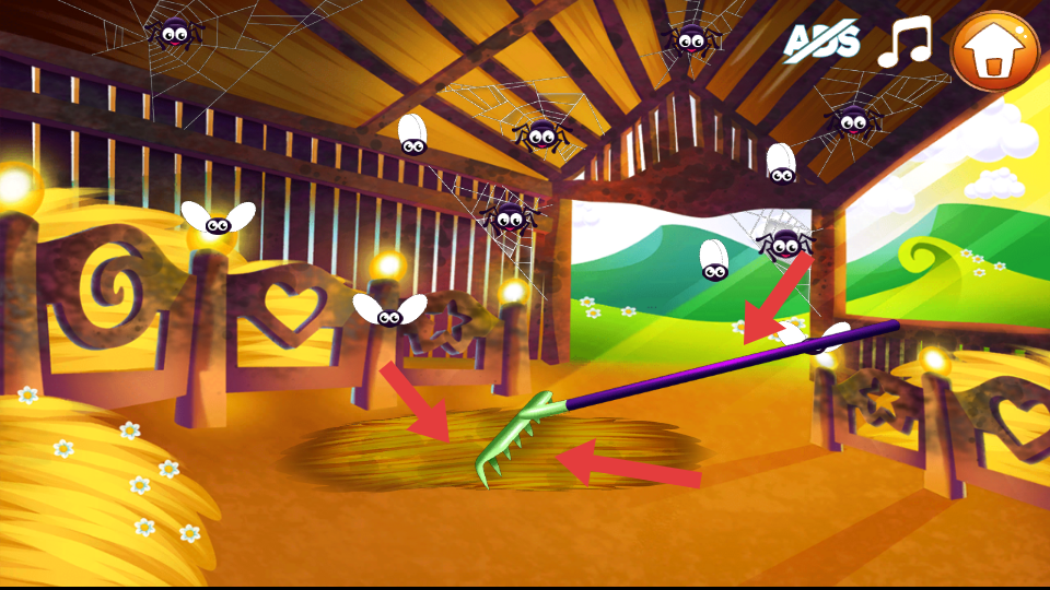 2、拿耙子整理農場的干草,讓干草變得整齊,整理時關注飛蟲動向,別被它們干擾。