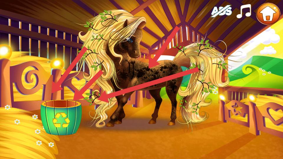 4、清理完雜物后,會出現需要清潔的小馬,將小馬身上的枝葉等清理到回收桶,讓小馬變干凈。