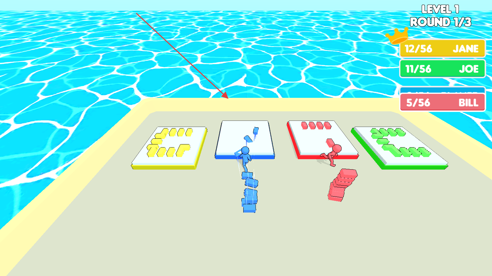 3、將收集到的方塊搬運到自己的區域,進行堆積,增加區域內方塊的數量,以此來提升自己的分數。