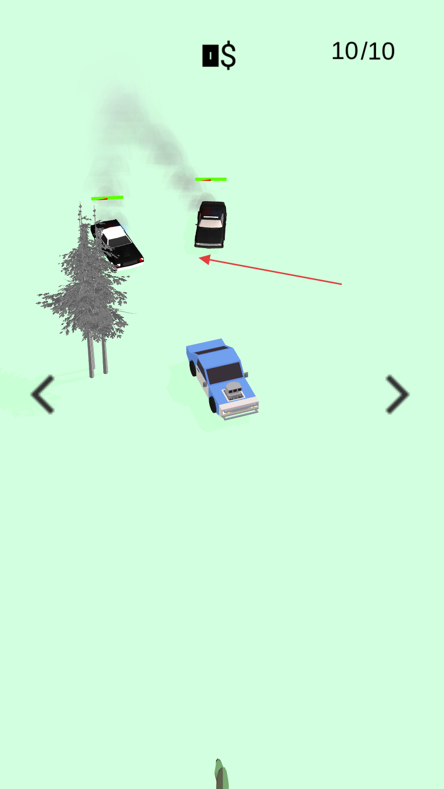 3、玩家游戲過程中通過點擊屏幕左右兩側的方向按鈕控制汽車移動,躲避前方出現的黑色車輛,避免發生碰撞。