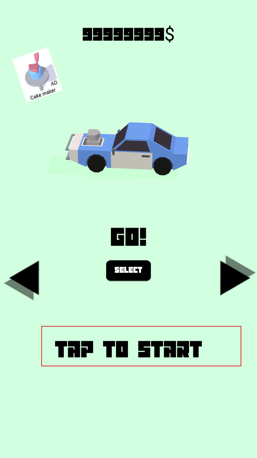 1、玩家下載游戲之后在游戲初始界面,點擊TAP TO START按鈕,操控藍色汽車進入游戲。