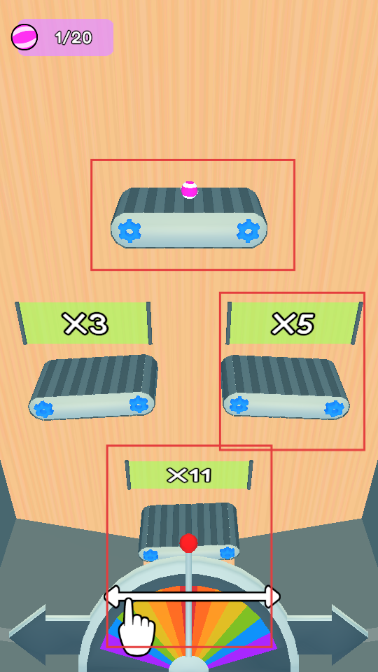 1、基礎傳送操作:通過單指滑動調節傳送帶傾斜角度,觀察小球彈跳軌跡及時調整,確保球體平穩移動到目標區域。