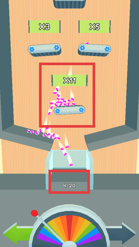 2、小球數量增加后,會落入收集容器,不斷積累小球數量,朝著關卡要求的數量目標推進。