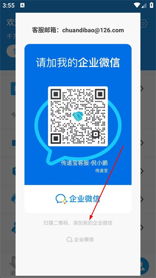 4、在客服頁面查看企業微信的二維碼,可掃描二維碼添加客服微信,通過該渠道咨詢問題或獲取相關服務,完成溝通對接。