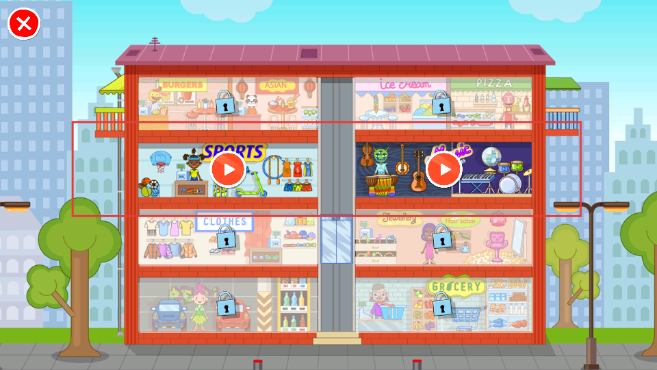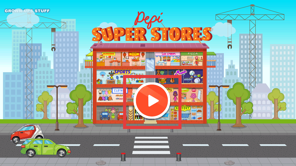 1、點擊畫面中間的紅色播放按鈕,進入Pepi Super Stores游戲場景,開啟在超市里的探索與互動之旅。