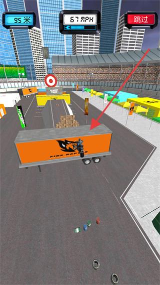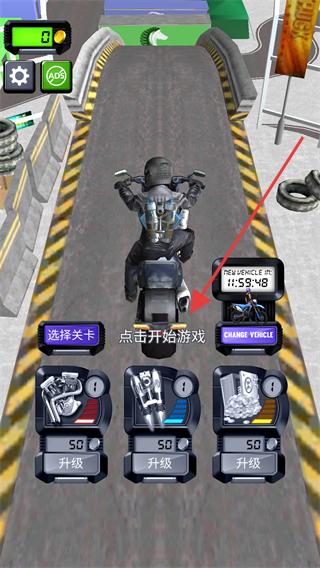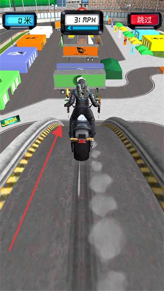 2、在賽道行駛過程中利用操控方式,讓摩托車沿著賽道前進,遇到坡道時,控制摩托車的速度和角度,使其順利通過坡道,向更遠的距離行駛。