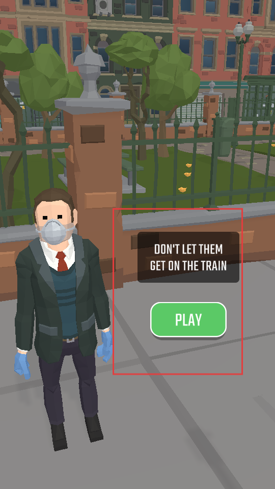 1、點擊PLAY,進入關卡,觀察場景中人物的動向,操控角色,阻止特定人物靠近并登上火車,守護火車安全。