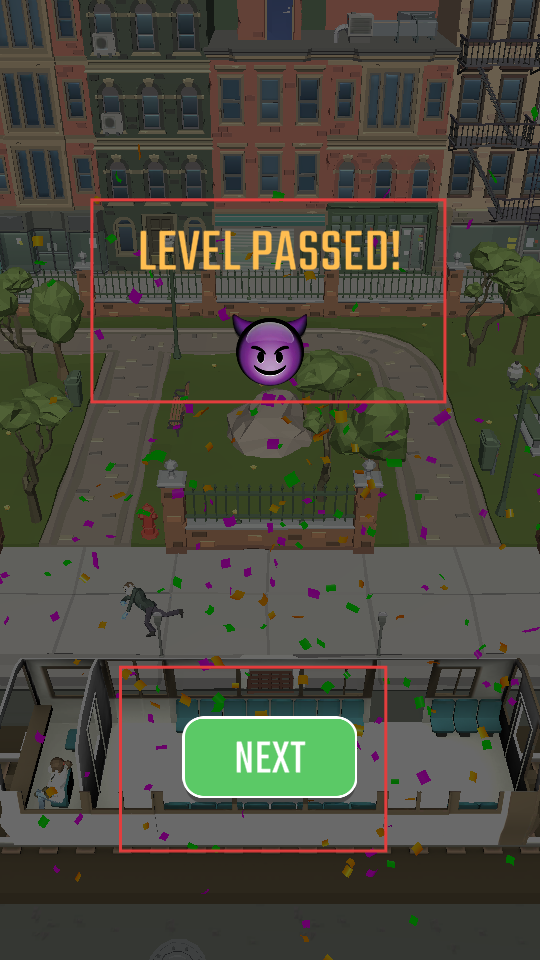 3、成功阻止所有目標人物登車后,關卡通關,界面會顯示通關提示,此時點擊NEXT進入下一關,繼續挑戰新的場景。