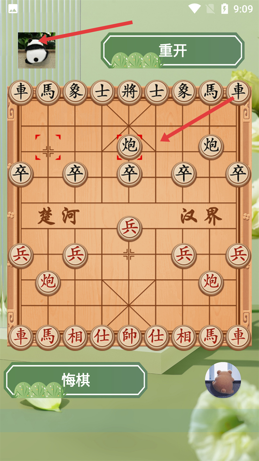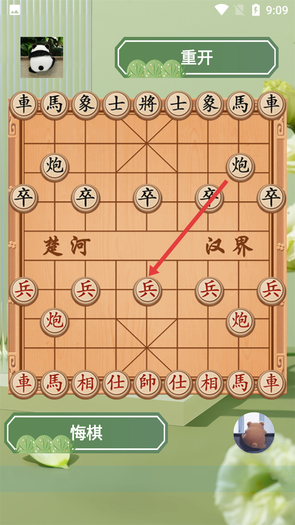 3、對局開始棋盤上雙方棋子按規則擺放,輪到自己行棋時,點擊己方要移動的棋子,比如兵。