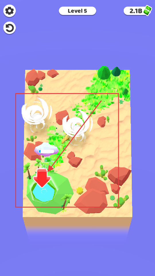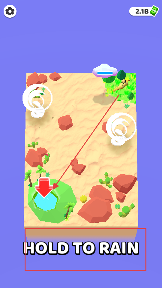 1、按住屏幕,讓云朵下雨,雨水落在沙漠上,周圍的區域會逐漸變綠,長出小草,還能利用龍卷風等元素,助力區域綠化。