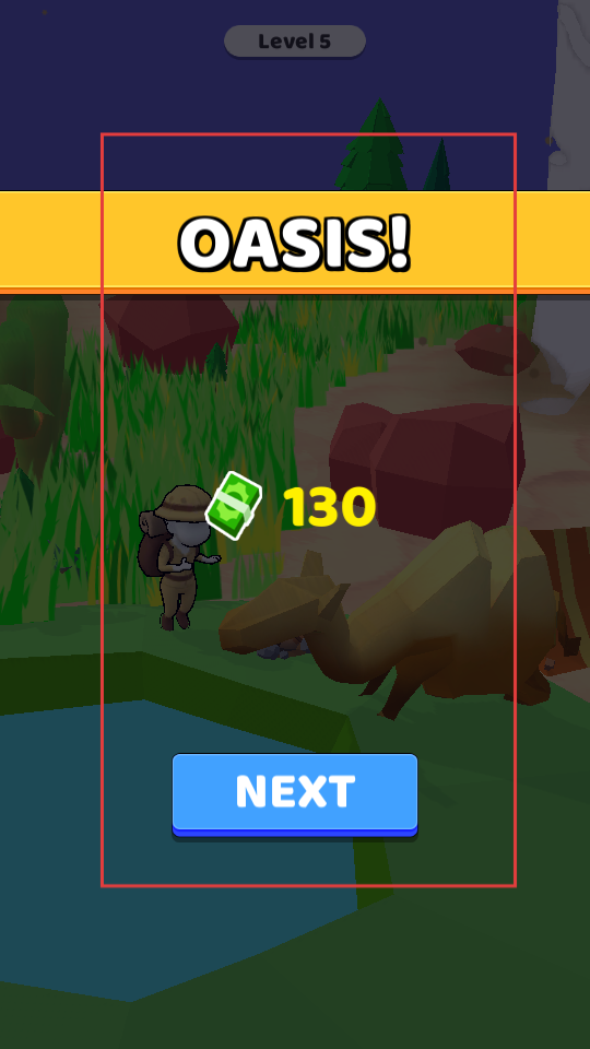 4、成功將角色和動物帶到水源后后,界面顯示OASIS,還能獲得金幣獎勵,點擊NEXT按鈕,可繼續挑戰下一個關卡。