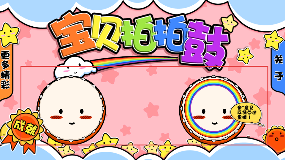 1、進入游戲界面,能看到兩個可愛的鼓形象,還有成就等標識,可先熟悉界面元素,為后續游戲做準備。