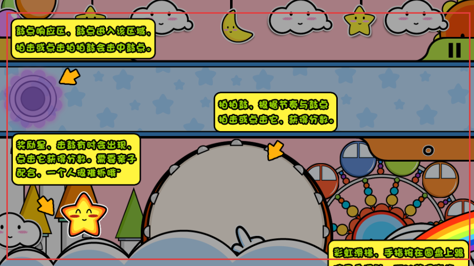 2、旋律跟奏模式:根據屏幕流動的音符圖標按時擊打,完整再現小星星等經典曲目。表現優異可獲得金色小鼓獎章。