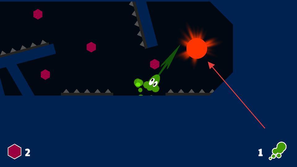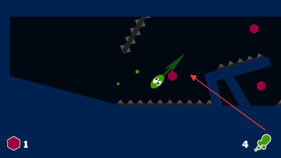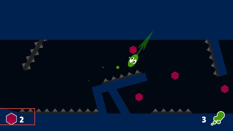 1、進入游戲操控綠色小生物在場景中移動,躲避尖刺等障礙物,同時收集粉色六邊形,開始冒險挑戰。