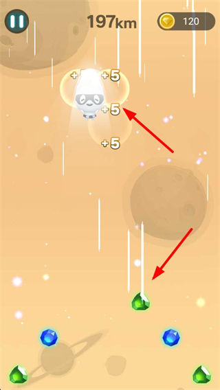 2、角色彈跳的過程會收集寶石,收集后會獲得數值加成,同時界面會顯示當前行進的距離,持續推進旅程。