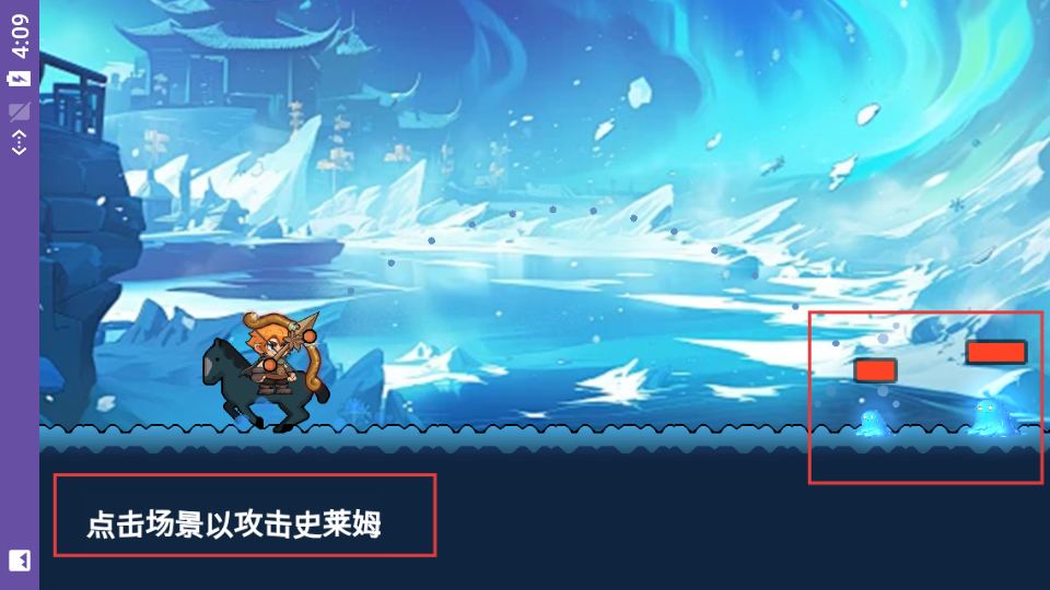 2、在關卡里點擊場景就能讓角色攻擊史萊姆,角色會朝著史萊姆發起進攻,此時要留意史萊姆的狀態,準備應對后續情況。