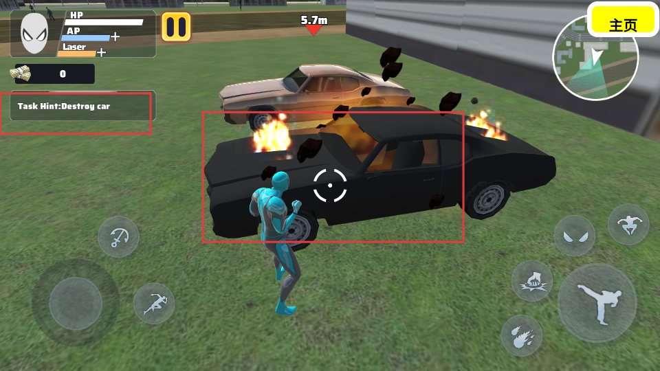 3、游戲中會有任務提示,像Destroy car,操控角色對車輛進行破壞,通過攻擊等操作完成任務,推進游戲進程。