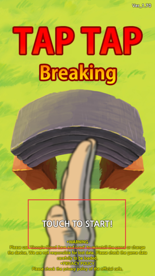 1、點擊TOUCH TO START,進入游戲,操控角色,準備通過點擊屏幕,讓角色出拳破壞木板,開啟挑戰。